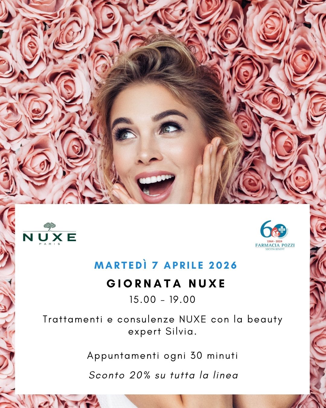 Farmacia Pozzi Viale Scalabrini 102, Bassano del Grappa, ItalyTi aspettiamo in Farmacia, dalle 15:00 alle 19:00 per una pomeriggio di trattamenti e consulenze NUXE.